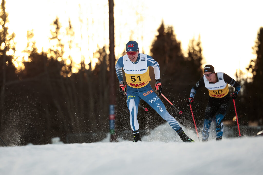 – Oli kyllä taas aika raju päivä. Jouduin heti todella ahtaalle. Tuurikin kävi, että kun itse lähdin, niin näin, että noin kymmenen metrin päässä menee norjalainen ja kilpailun voittaja (Einar) Hedegart. Hänet sain onneksi kiinni heti alkuun ja siinä pystyin hiihtämään ensimmäiset 4,5 kilometriä, niin se kyllä petasi todella hyvät paikat takakierrokselle. Kaikki oli siinä vielä mahdollista ja olin pelissä mukana. Todella tiukalla olin kyllä toisella kierroksella, ettei ollut muu tavoite kuin yrittää pitää mies todella tiukalla ja rummuttaa maaliin asti. Ei voi muuta sanoa kuin tyytyväinen olen. Huollolle iso kiitos, oli raketit alla tänään, iloitsi Ruuskanen.